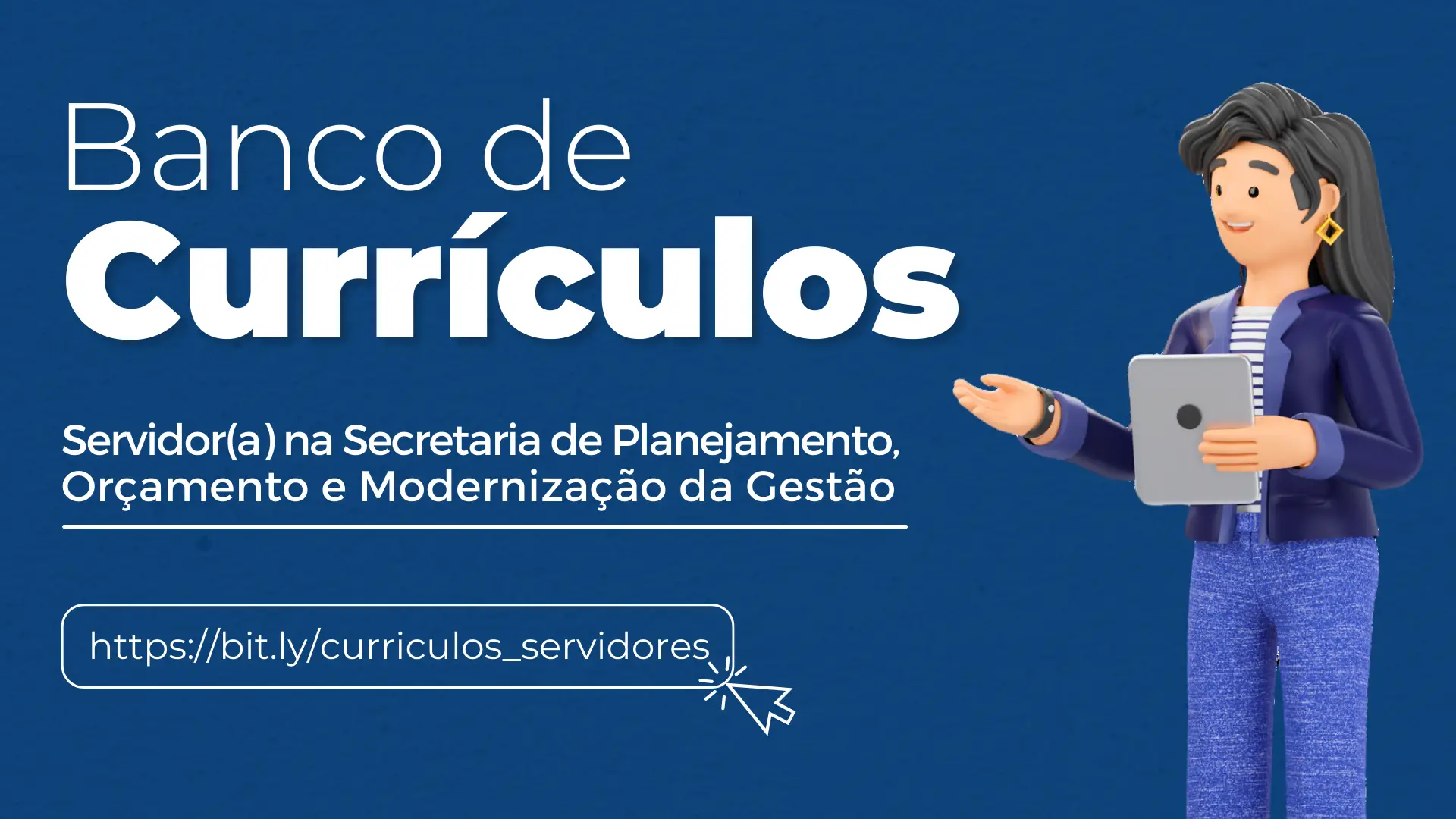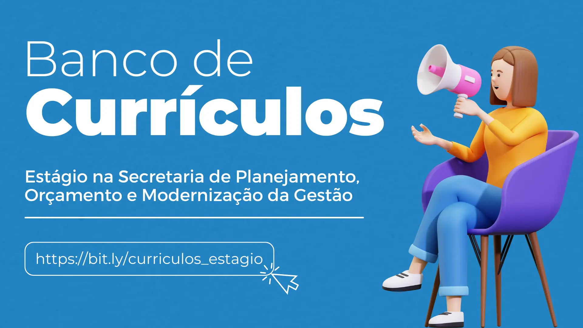 Interessados em participar de processos seletivos para atuar na SEPLAG podem se candidatar no Banco de CurrÃculos para vagas especÃficas, quando houver, ou deixar seu currÃculo no banco para futuras oportunidades, de acordo com suas áreas de interesse e competências indicadas.